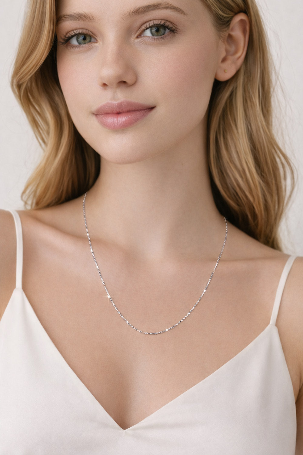This delicate 14K gold cable link chain is fine and light. It is diamond cut and has a shimmery and sparkly appearance so it is best suited for girls and ladies. A great add-on for our small pendants, it is available in 14K yellow or white gold in 16" and 18" lengths.