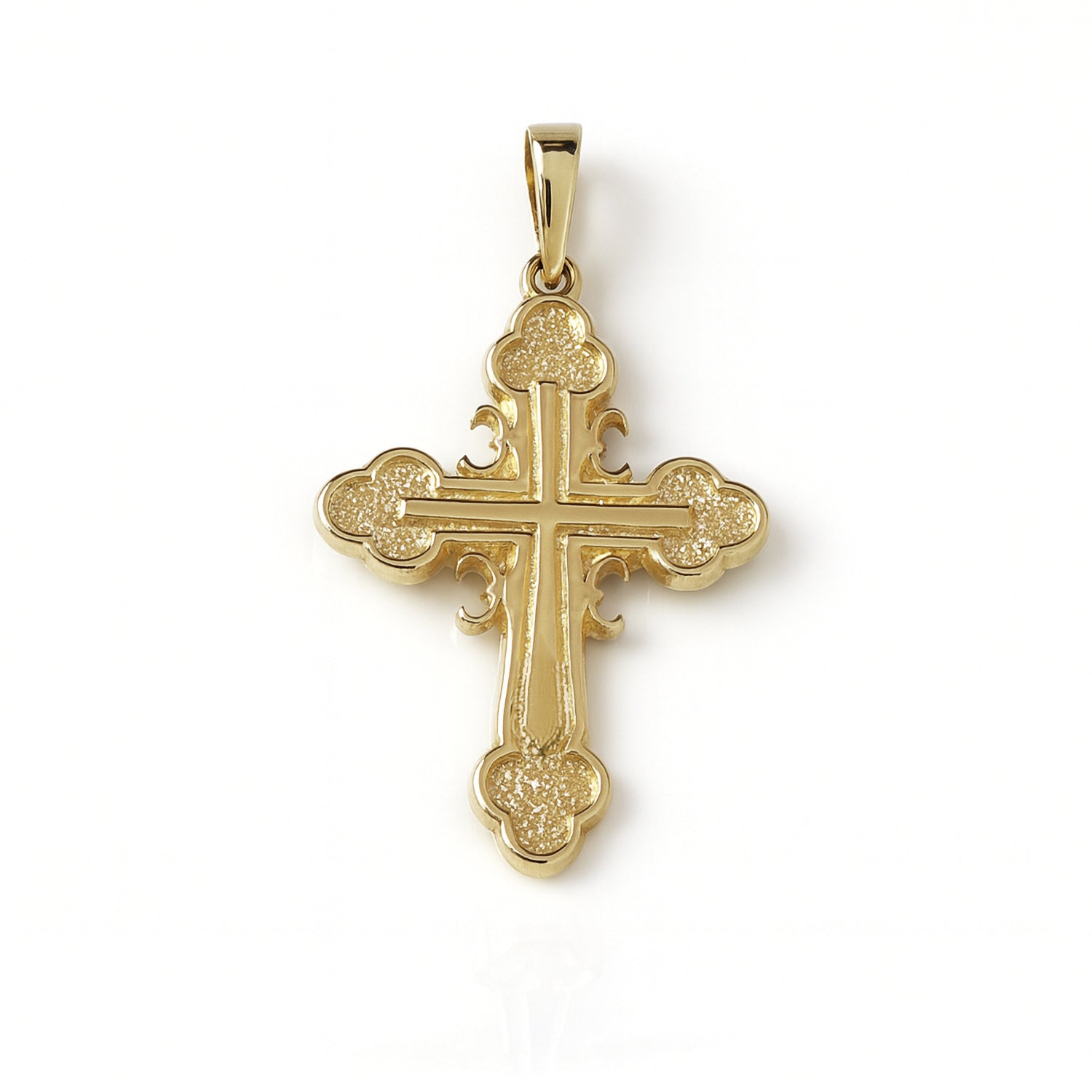 Handcrafted in small batches - not mass produced. Available in solid 14K yellow or white gold. All of our gold Orthodox crosses come with a box.