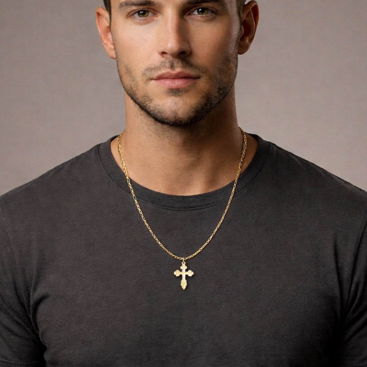 *Image of cross with chain on black background is with our 2.25 mm Figaro
