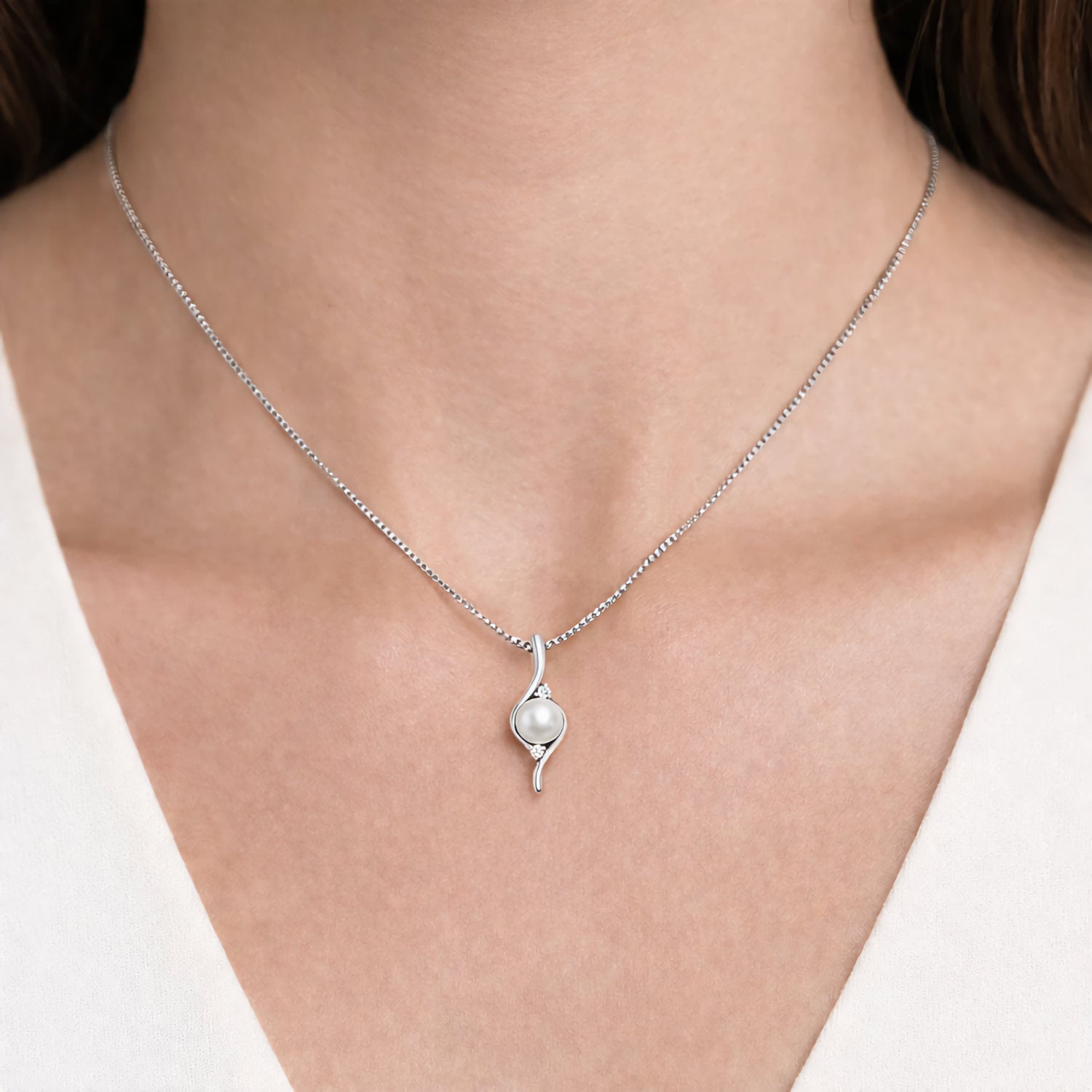 Dainty Diamond Accented Pearl Pendant Necklace