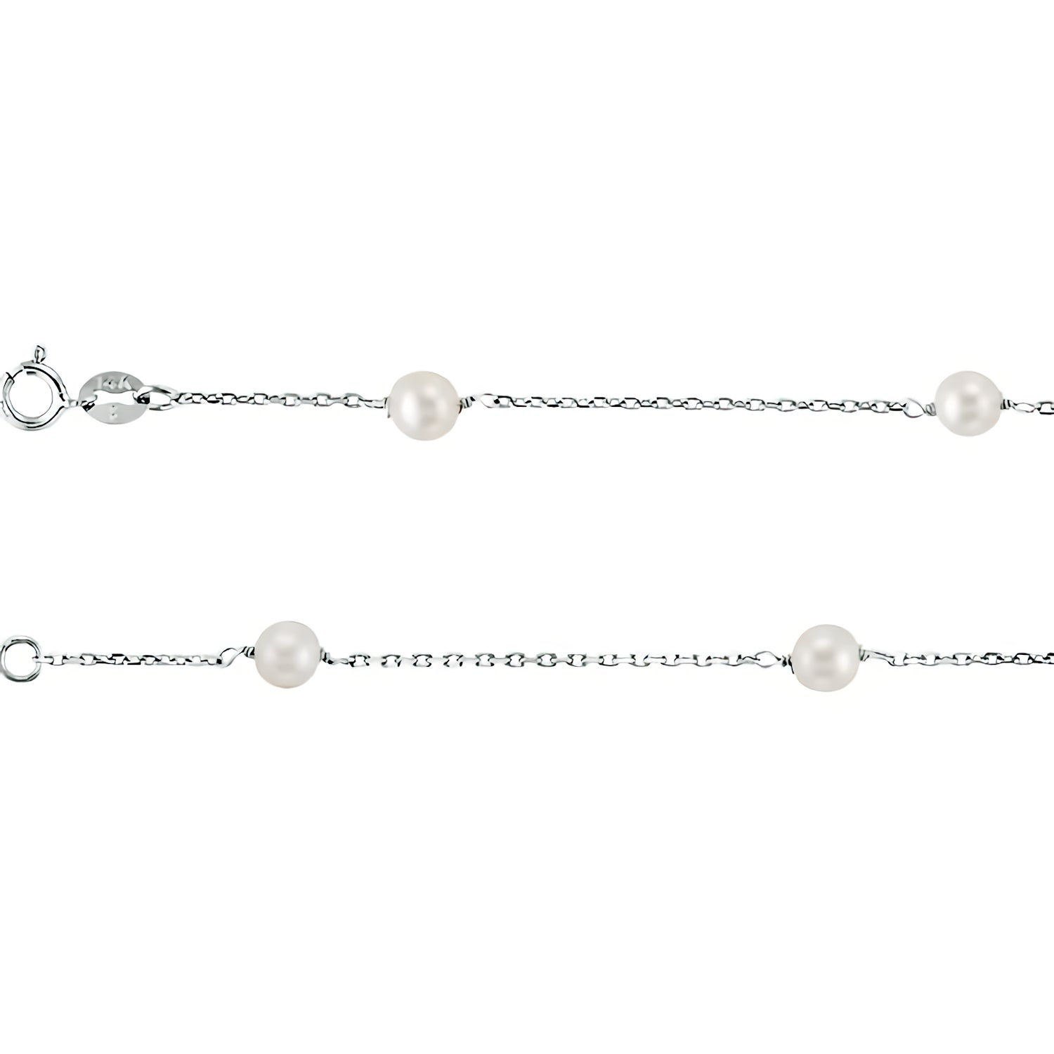 A delicate pearl station necklace in 14K white gold featuring 9 lustrous freshwater pearls set along a delicate cable chain. This pretty necklace makes a charming gift for women and girls of any age and for any occasion.