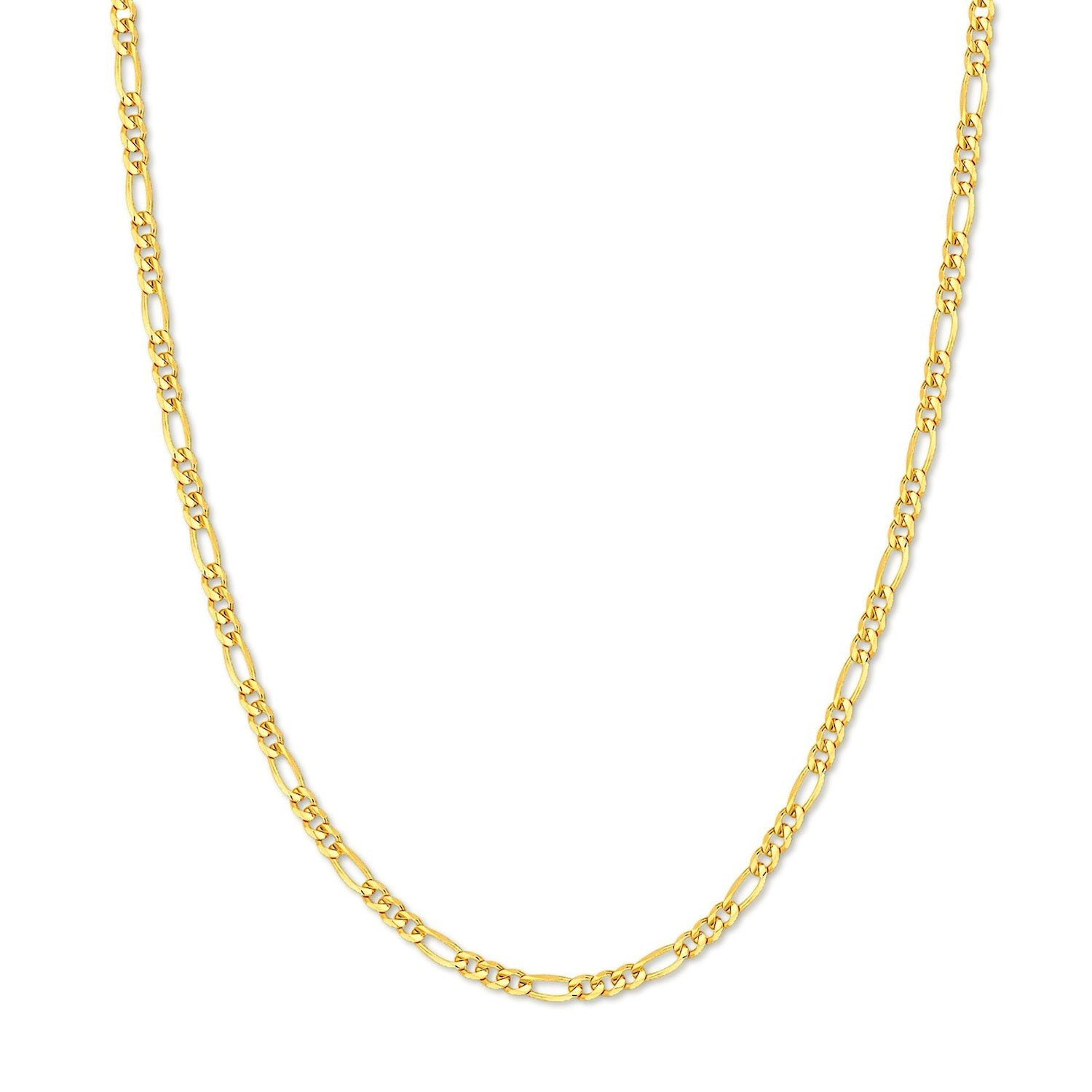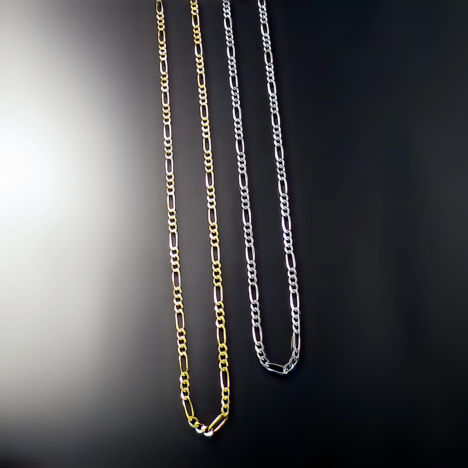 Our 2.25 mm 14K gold Figaro chain is perfect with pendants or as a stand alone necklace for men or women. This timeless style originated in Italy and though it goes back centuries, it still remains one of the most loved chain designs the world over. It is particularly favored in combination with religious pendants such as crosses and medallions. Choose from 14K yellow or white gold.