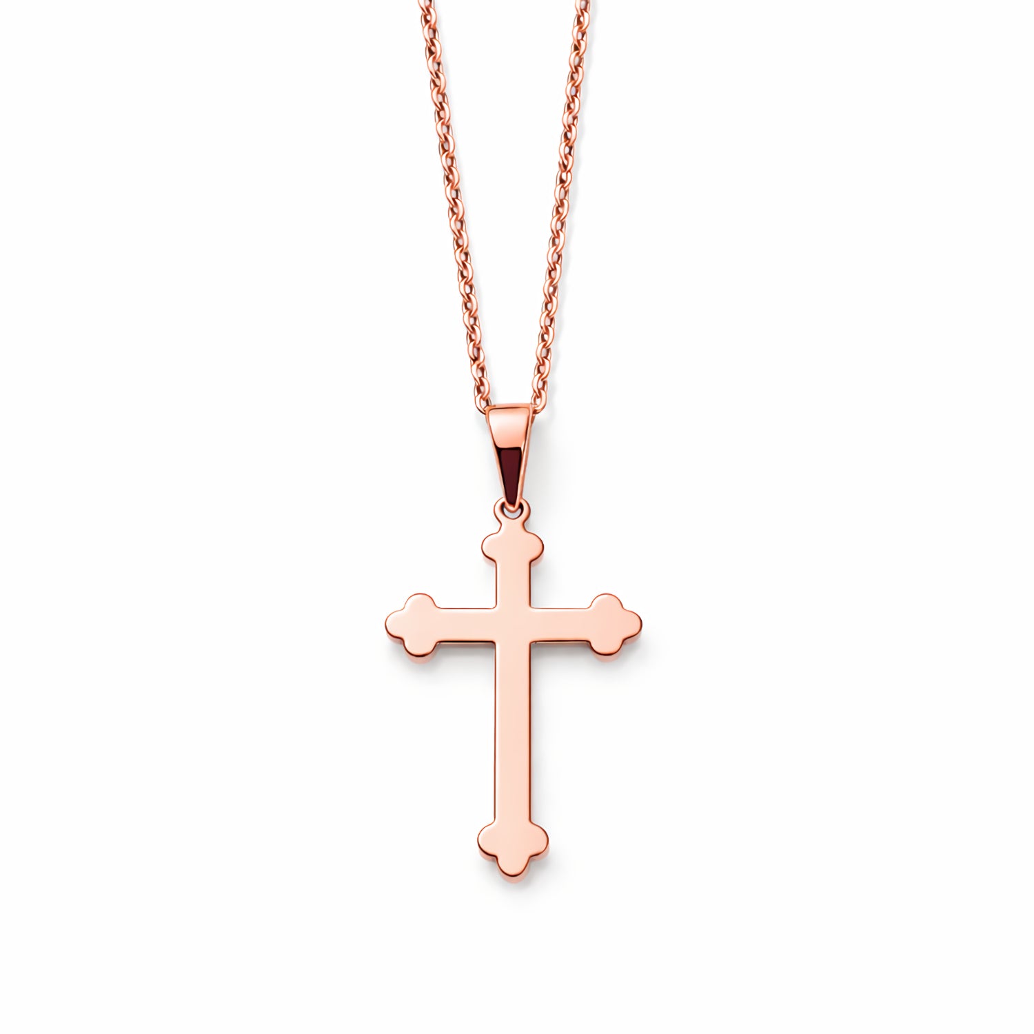 Rose gold Orthodox cross made in solid 14K gold. A clean, timeless design in a proportion suitable for infants, children or ladies looking for a discreet cross. Neutral design makes this cross an ideal gift for any Eastern Orthodox Baptism.