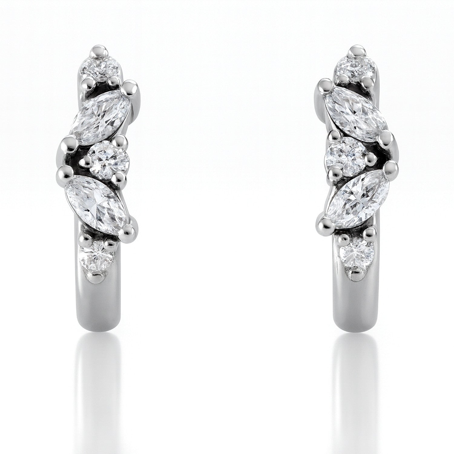 These small diamond huggie hoops are perfect for the minimalist who wants a little sparkle. Set with natural marquise and round cut natural diamonds, these little earrings will make a perfect addition to your stack but look fabulous on their own.