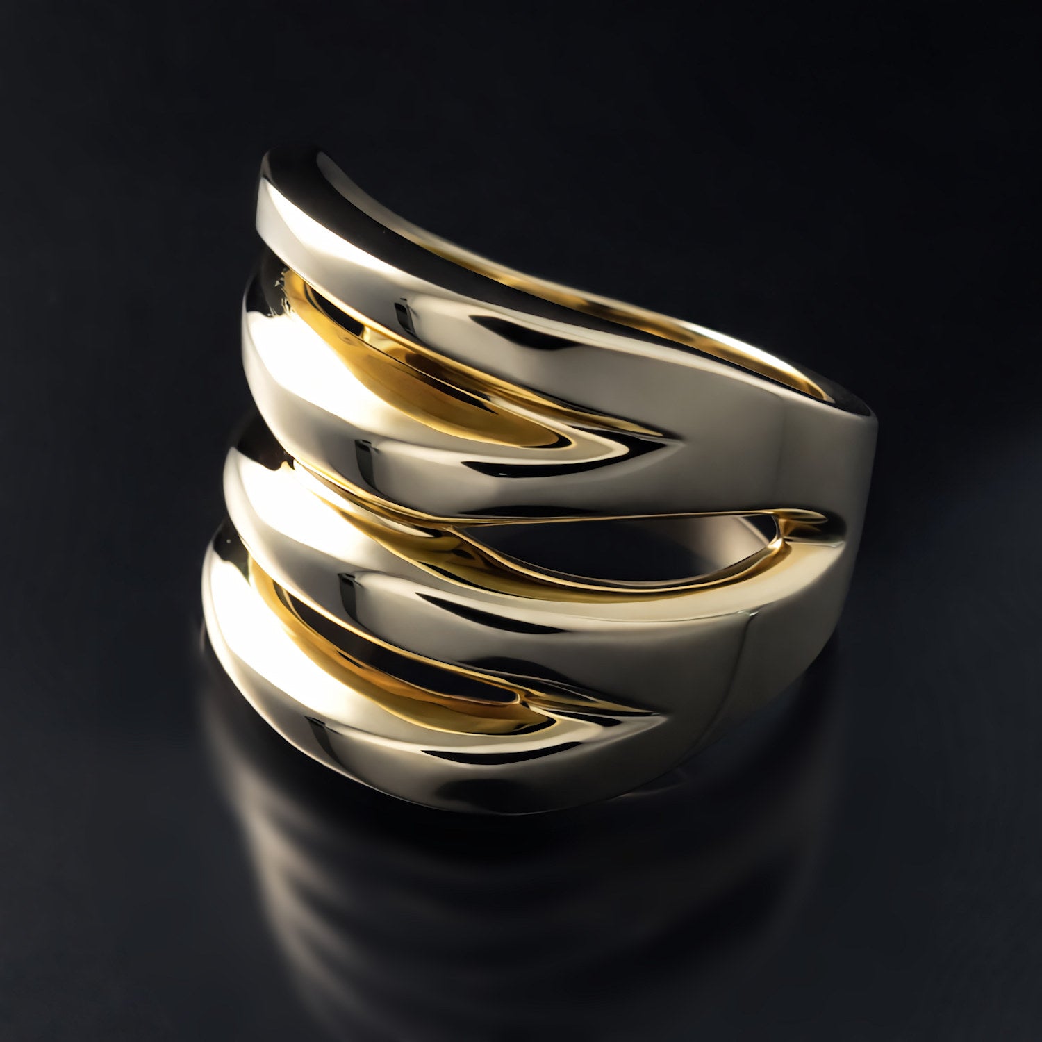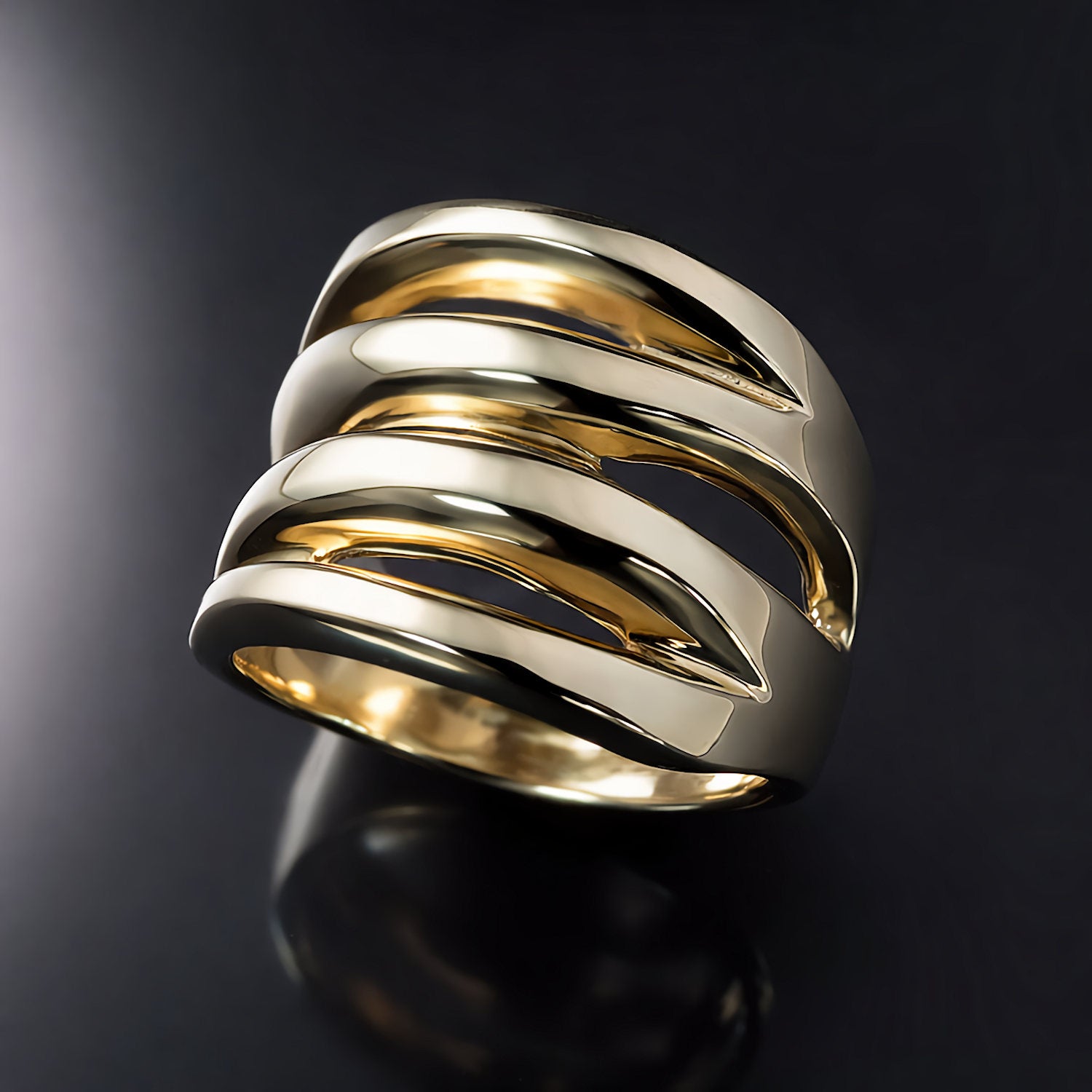 This striking gold statement ring commands attention with its substantial wide band and distinctive zebra-inspired cutout pattern. The design balances architectural boldness with refined elegance and the result is sophisticated style. Crafted in solid yellow or white gold, this wide band is a contemporary statement piece that goes beyond trends and offers a confident, sculptural presence for those seeking enduring luxury with modern design sensibility.